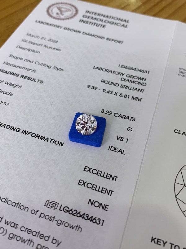3.23CT G VS1 3EX CVD Laboratorio de cultivo de diamante de corte redondo Certificado IGI